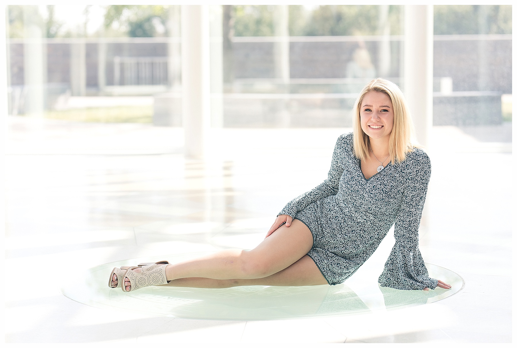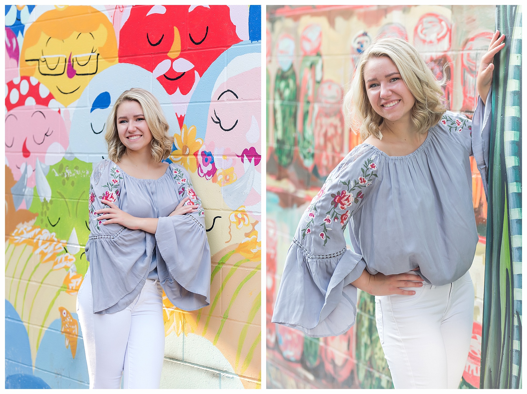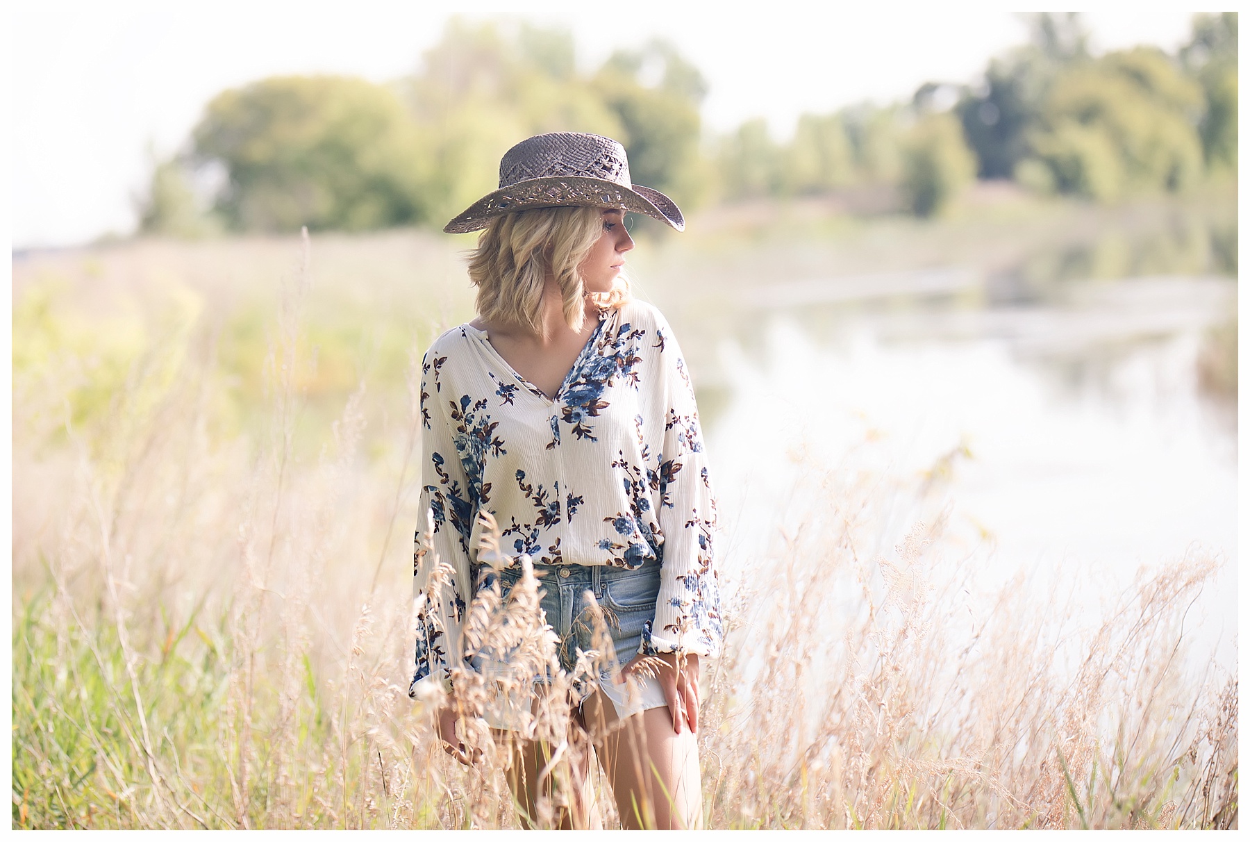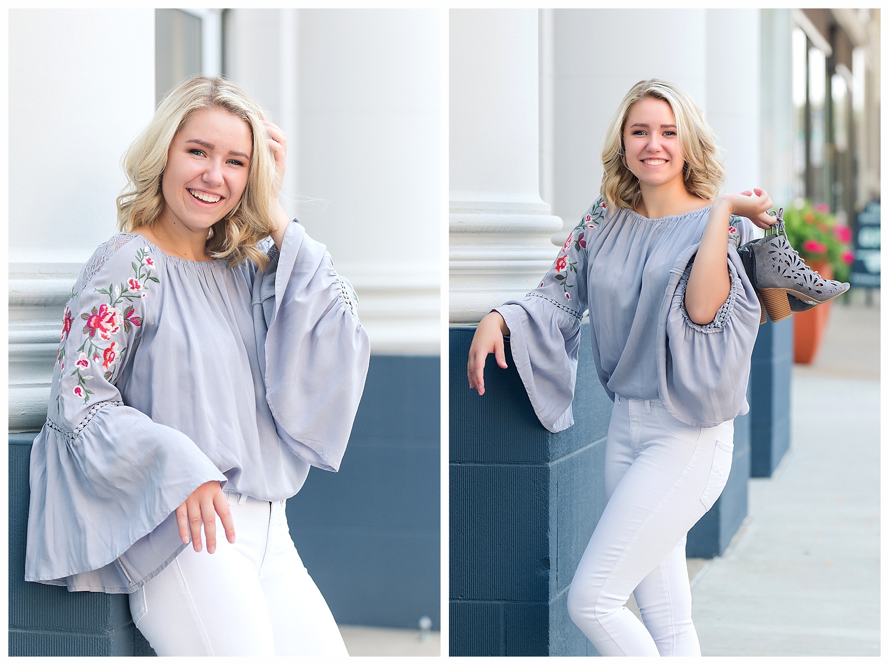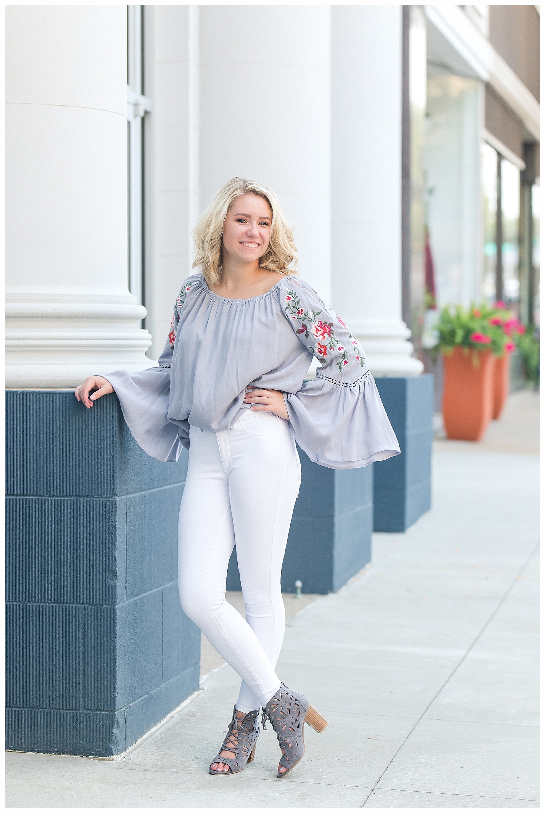 There are just so many fun, pretty and unique places around Bismarck for senior pictures – and Mikayla and I tried to hit up as many spots as we could!  Senior pictures wouldn’t be complete without the iconic Heritage Center pictures.  The atrium is always beautiful and I loved Mikayla’s choice of outfit for this spot.  The light blues were perfection.  We also wandered through the museum a bit and found a few more picture perfect places.  Then it was off to find some pretty spots with the Missouri River in the background.  Check – and how cute is that hat?!  While we were down by the river, we made a quick stop by Sertoma Park and the SuperSlide Amusement Park for some fun stuff and for Mikayla to do a quick hair curl.  If you don’t mind a few curious onlookers, what’s wrong with curling your hair at the park?  :).  Then we headed downtown with all the cool old building, ally’s, and murals.  We were pleasantly surprised to find a small street fair and grabbed a couple of fun shots there.  And if you get the chance, be sure to stop at the Dakota Nuts and Candy! – A veteran owned business, that is super friendly and fun and generous with a tasty sample or two!