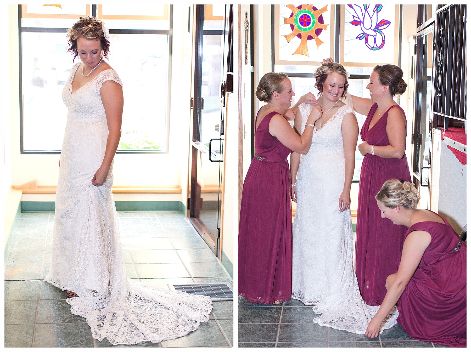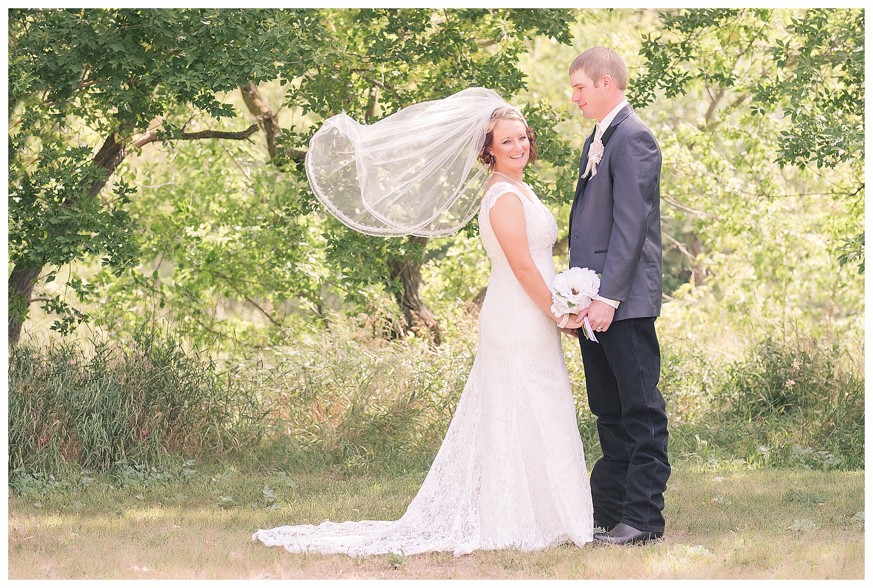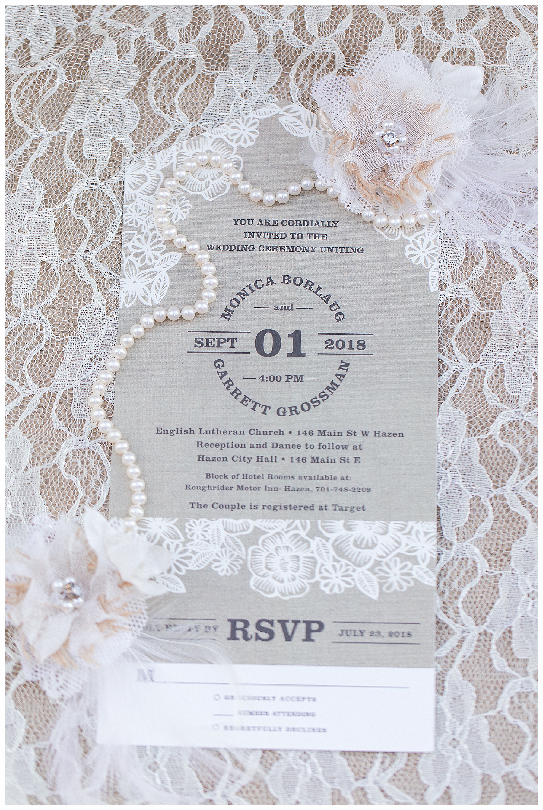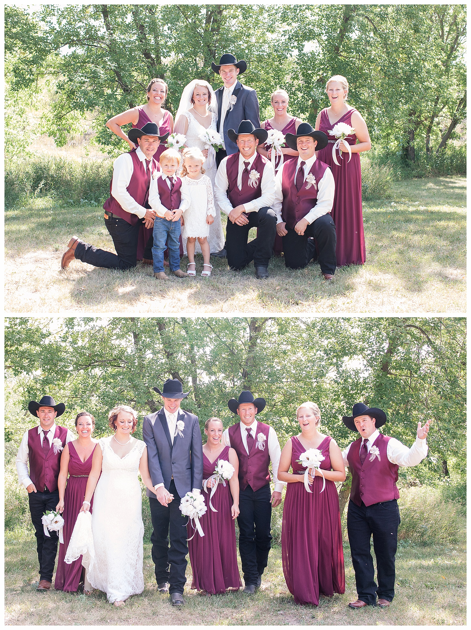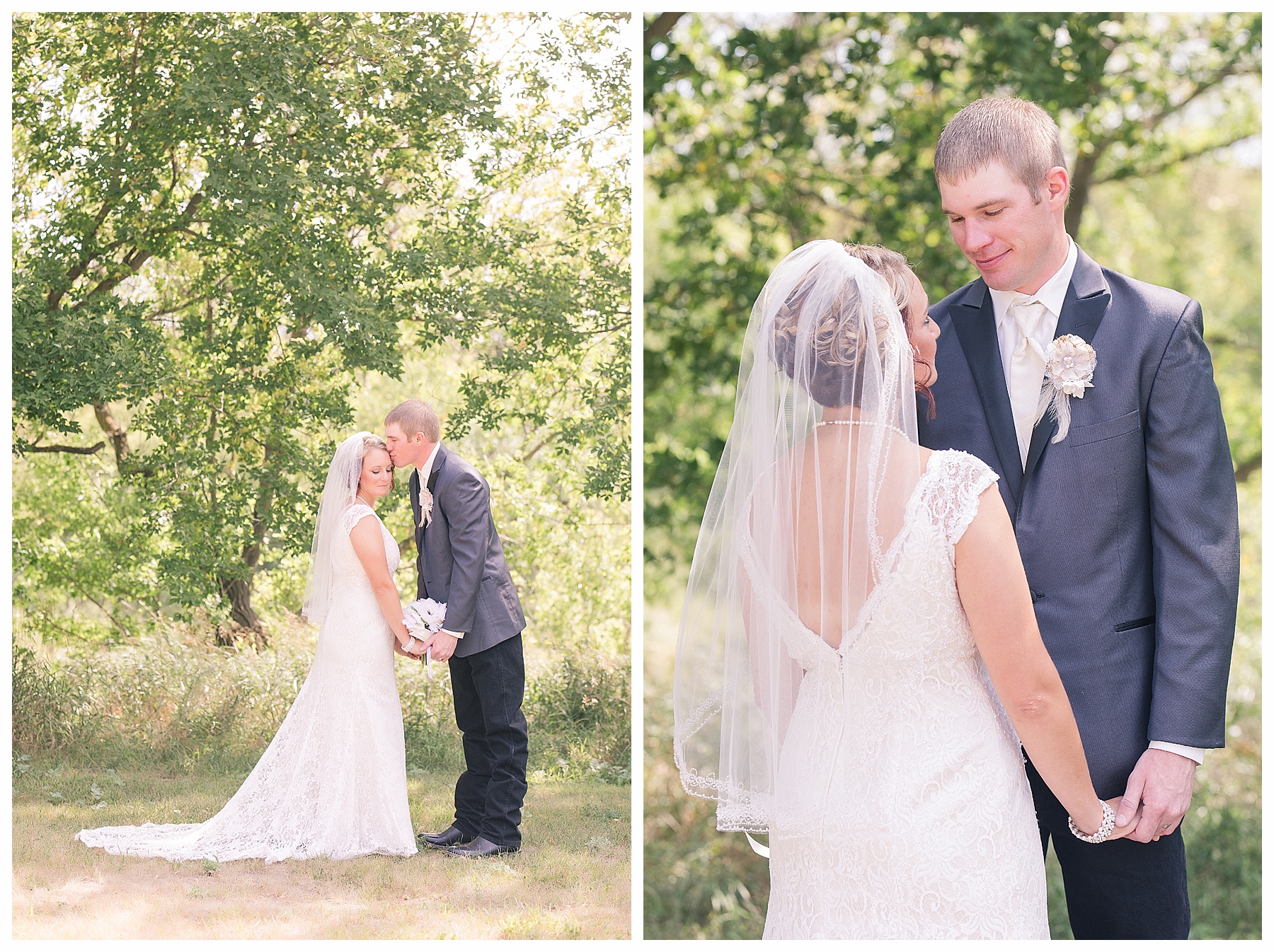 Another perfect wedding day in Hazen, North Dakota! Sunny and warm, a fun easy going group of friends, and a gorgeous happy bride and groom! Monica and Garrett – everything was perfect! We had such a pretty little spot in the church for Monica to put on her finishing touches and her girls to give her one last primp before heading to the park for our outdoor bridal portraits. The light in the park was just beautiful, sunny and filtering through the trees creating light, bright and joyful finished wedding pictures. The bride, her sisters and her best friend gathered round Monica, with hugs and laughs and genuine happiness for her. After the charming first look, the bride and groom photos were equally as beautiful with the sun and trees making perfect wedding portrait light. The guys had some fun and whole wedding party was just easy going and relaxed. Not much more that I could have asked for. After the ceremony, we all gathered to celebrate, eat, toasted dance with the new Mr. and Mrs. Grossman! Monica’s love of burlap and lace combined with Dodie’s (Found Events and Rentals) flawless talent for transforming a room with gorgeous decor, came together in a beautifully country chic feeling. Just a lovely North Dakota wedding day, start to finish!