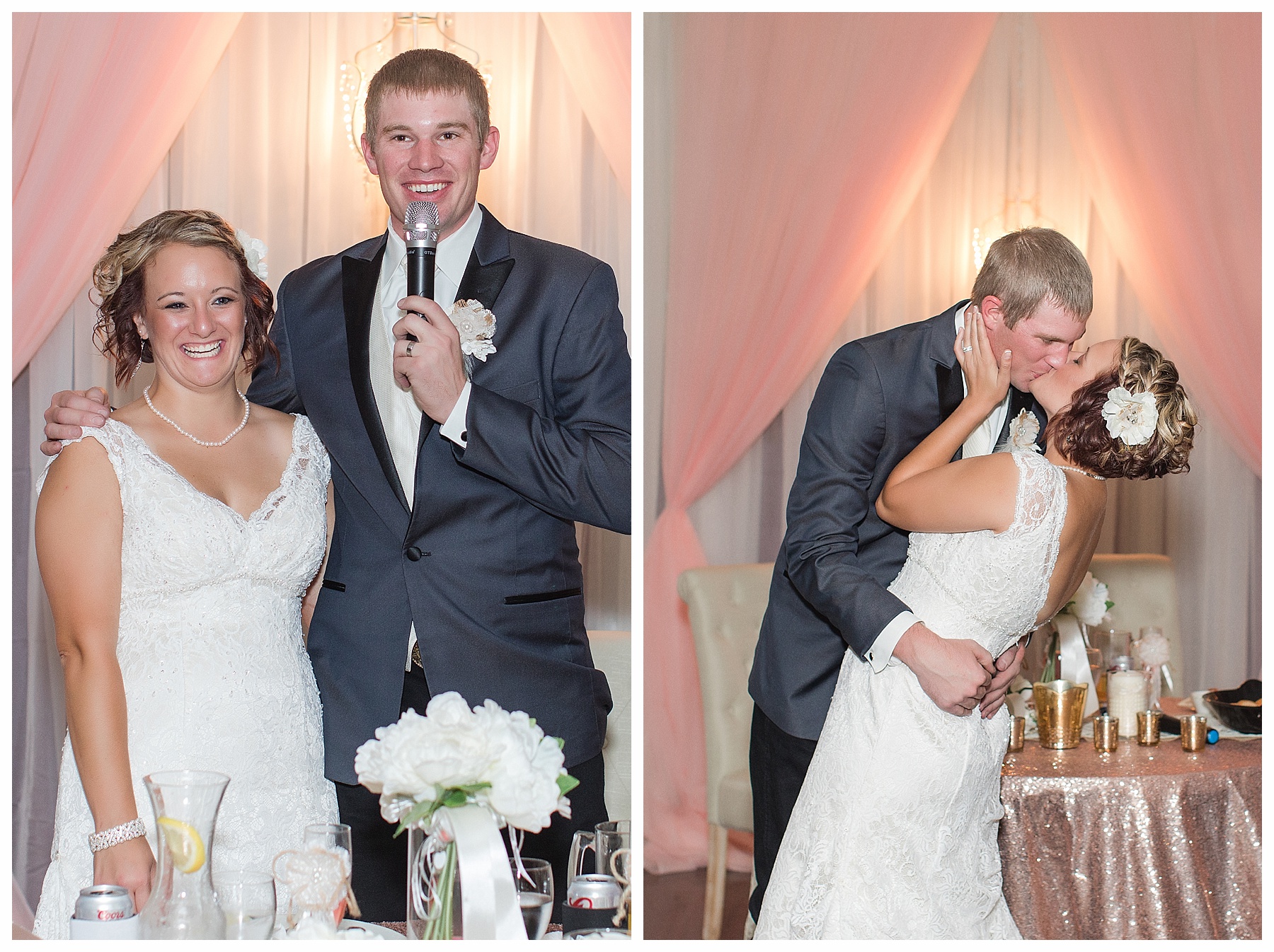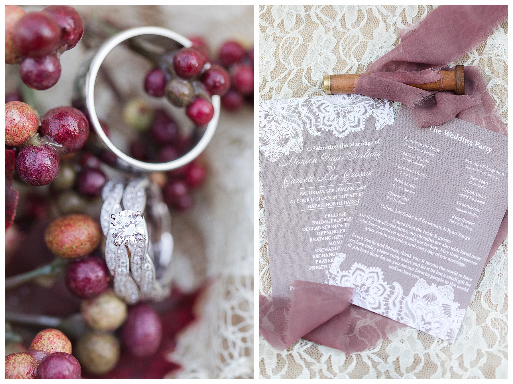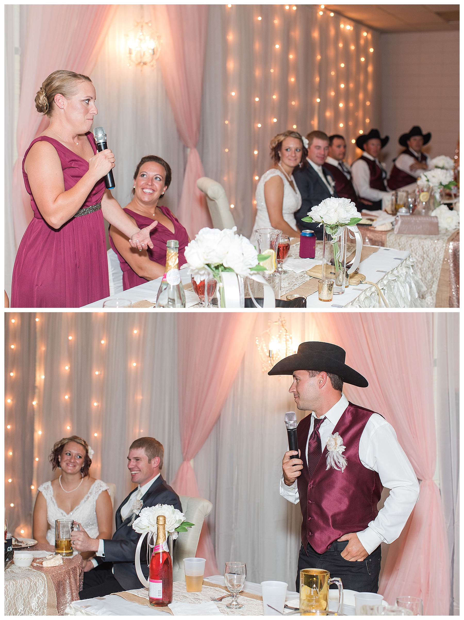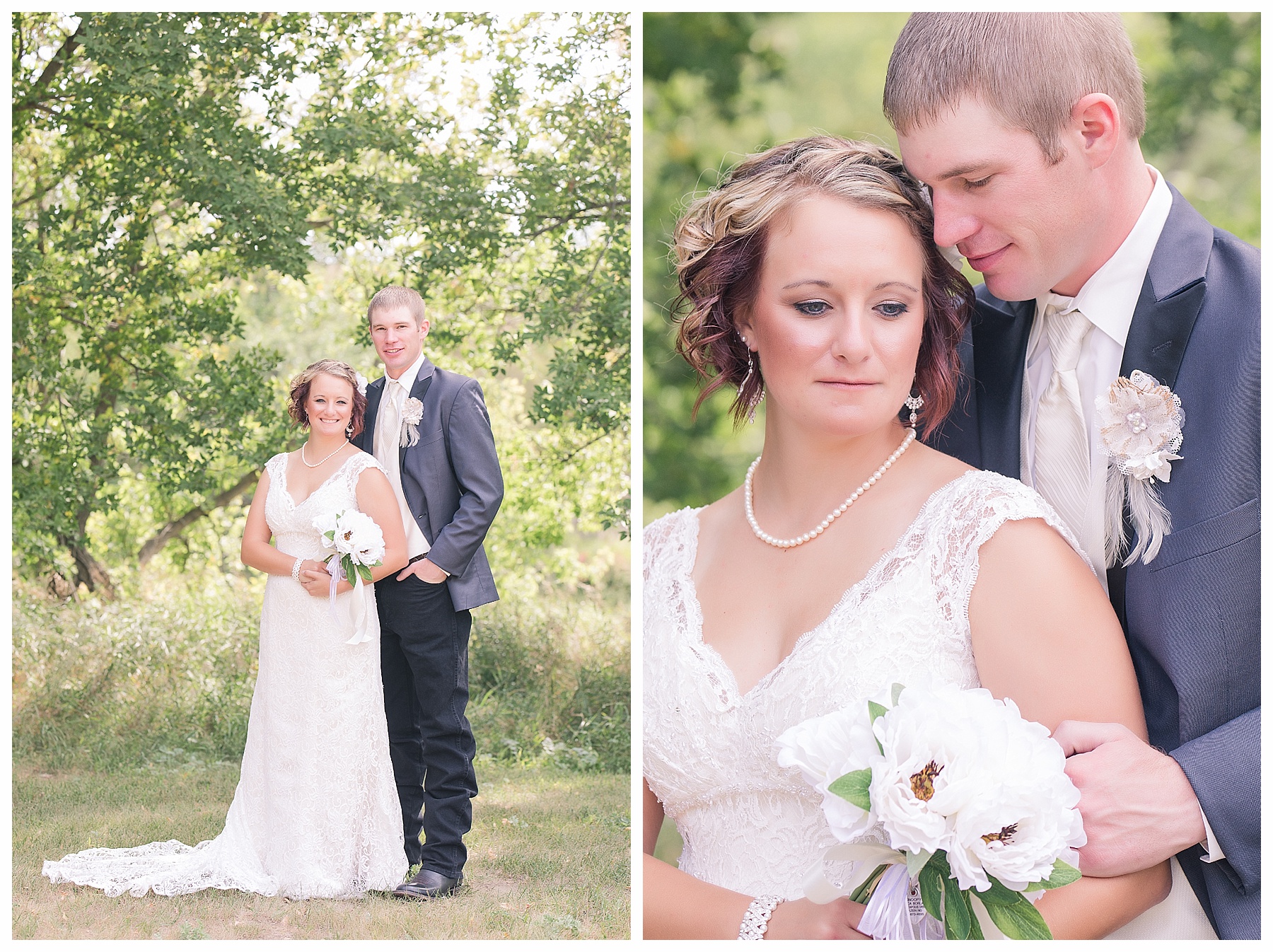 Another perfect wedding day in Hazen, North Dakota! Sunny and warm, a fun easy going group of friends, and a gorgeous happy bride and groom! Monica and Garrett – everything was perfect! We had such a pretty little spot in the church for Monica to put on her finishing touches and her girls to give her one last primp before heading to the park for our outdoor bridal portraits. The light in the park was just beautiful, sunny and filtering through the trees creating light, bright and joyful finished wedding pictures. The bride, her sisters and her best friend gathered round Monica, with hugs and laughs and genuine happiness for her. After the charming first look, the bride and groom photos were equally as beautiful with the sun and trees making perfect wedding portrait light. The guys had some fun and whole wedding party was just easy going and relaxed. Not much more that I could have asked for. After the ceremony, we all gathered to celebrate, eat, toasted dance with the new Mr. and Mrs. Grossman! Monica’s love of burlap and lace combined with Dodie’s (Found Events and Rentals) flawless talent for transforming a room with gorgeous decor, came together in a beautifully country chic feeling. Just a lovely North Dakota wedding day, start to finish!