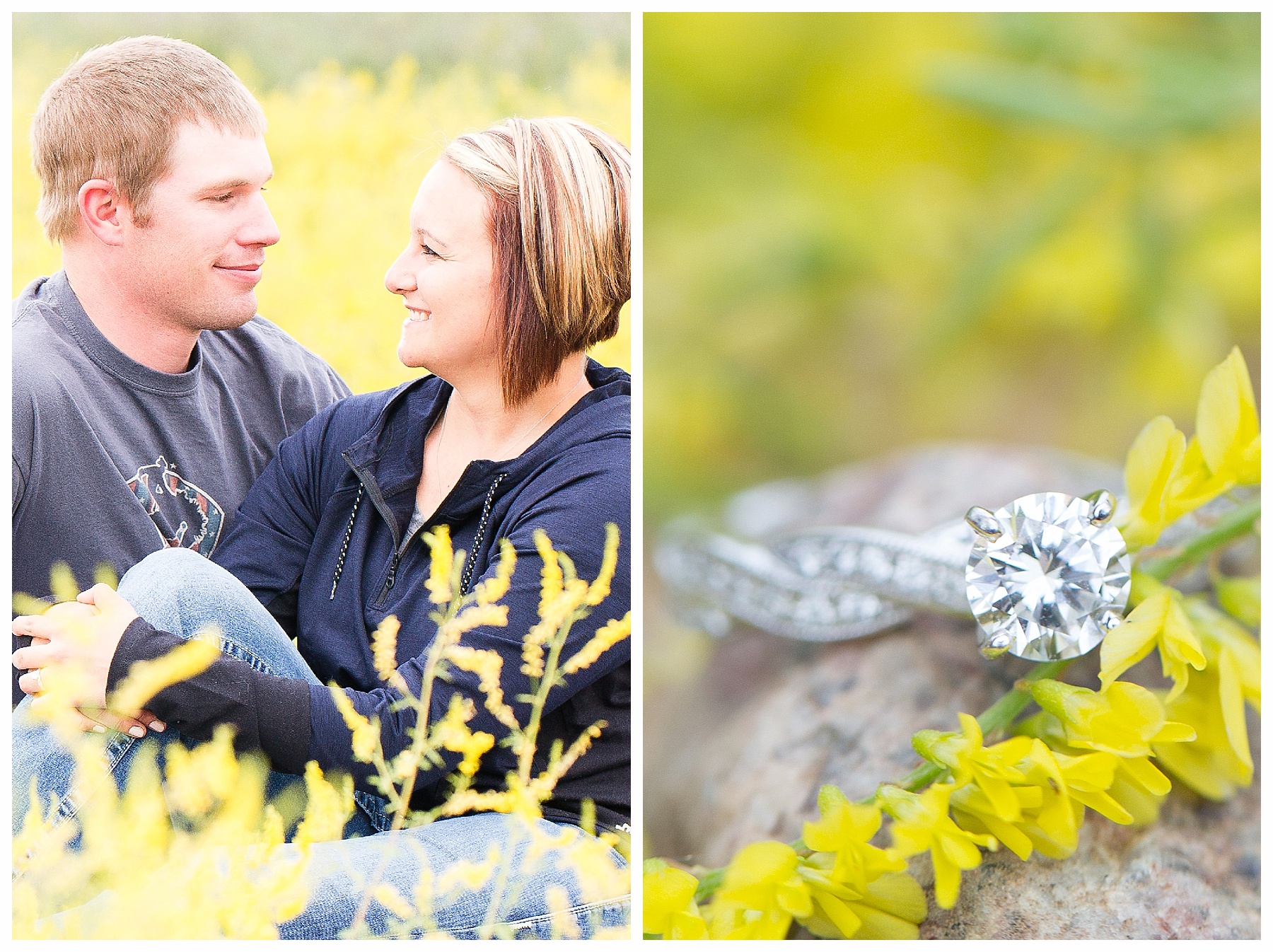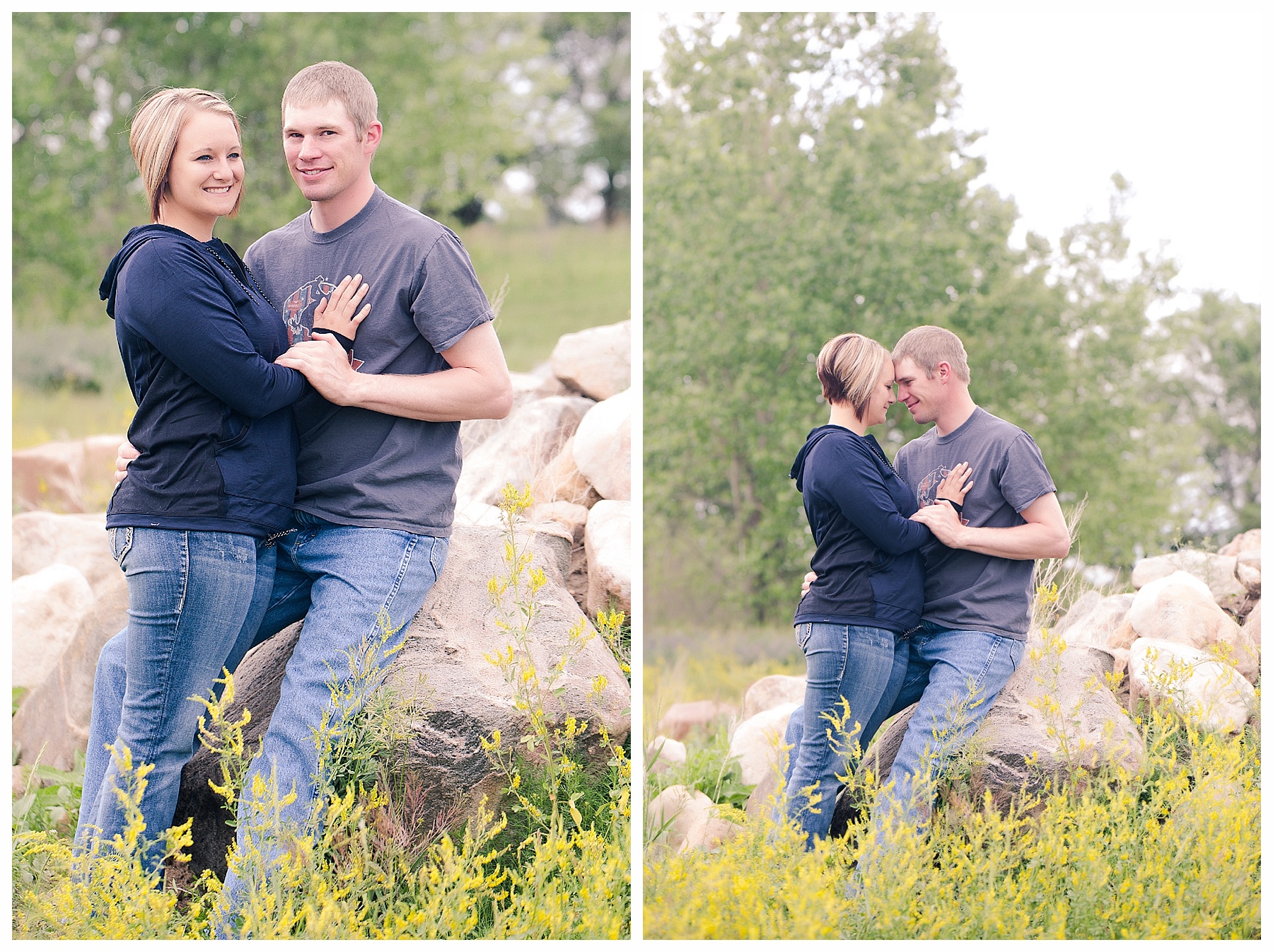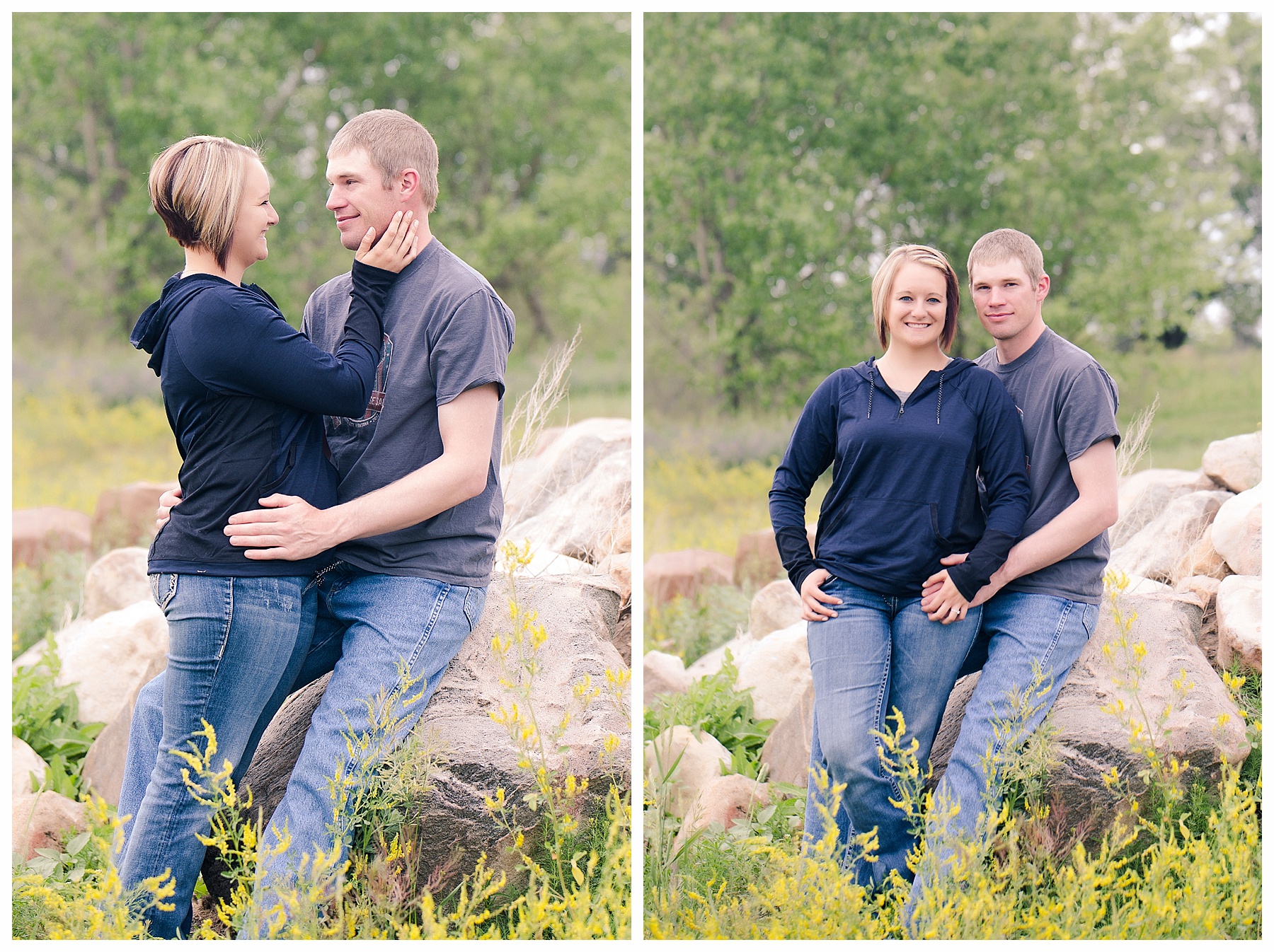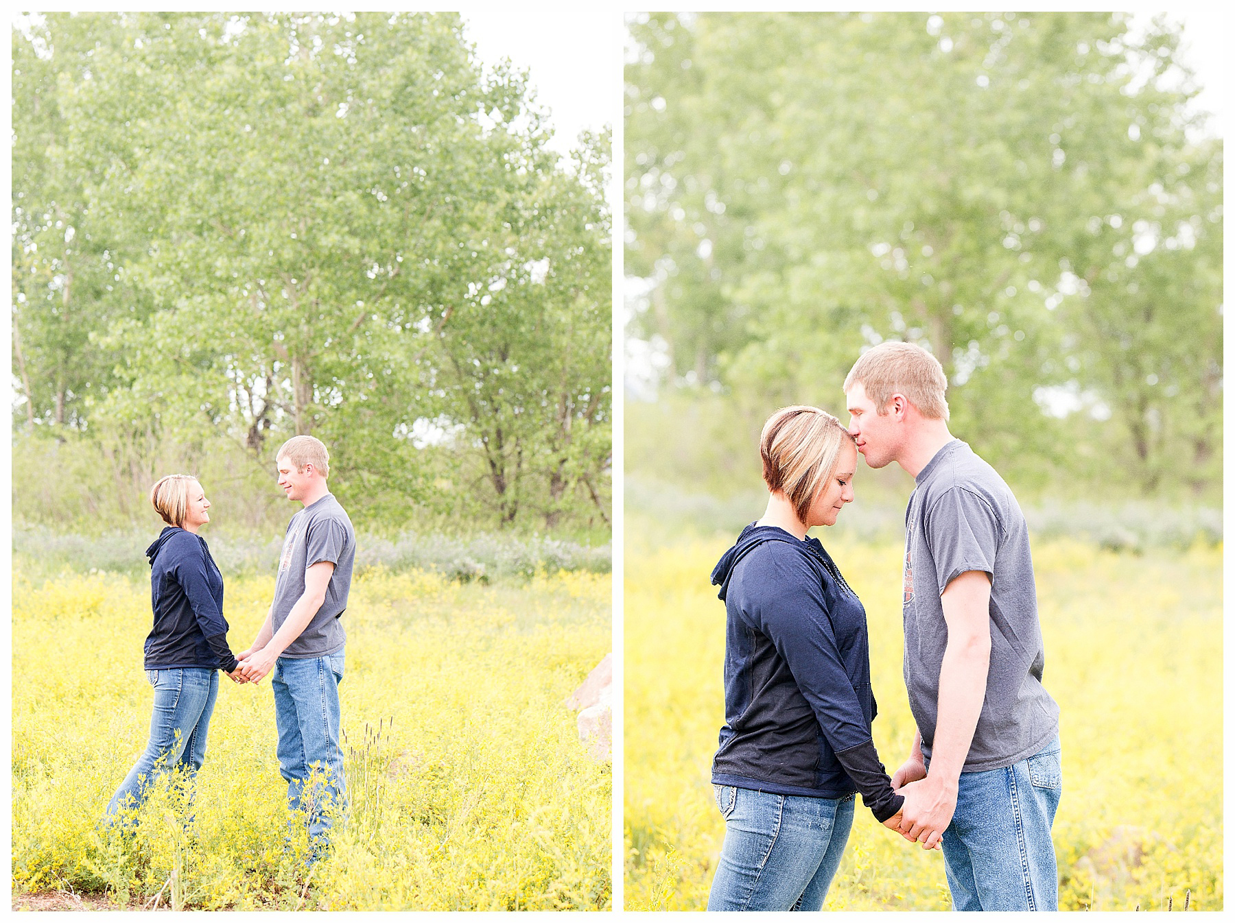 Monica and Garret are such a cute young couple and I couldn’t have enjoyed our evening’s engagement session any more! We made our way around Hazen and even had the opportunity to use some new spots – I couldn’t pass up those flowers (I think they are wild flowers, but who knows?). Along the way I got to hear the proposal story that happened on Valentine’s Day. Garrett was pretty sneaky, not even getting Monica a Valentine’s Day card and waiting until the very end of the day to get down on a knee. She was feeling a little neglected on a day of romance, but Garrett pulled off the most romantic gesture of all! I expect they will have a lifetime of fun and surprises for one another!